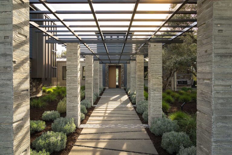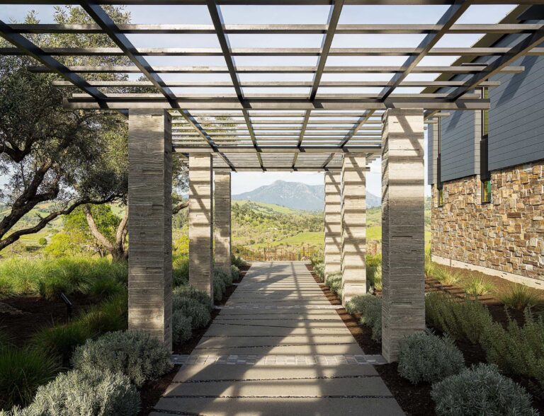 Set on a breathtaking site with sweeping views of the Alexander Valley and not another structure in sight, this estate retreat was designed and built as a weekend getaway for a couple from the Silicon Valley to host family and friends on a grand scale – a complex of structures and outdoor gathering spaces designed and built for entertaining. The couple wanted a contemporary lifestyle, accomplished within a set of structures that felt like they had developed over time.Location: Healdsburg, CA