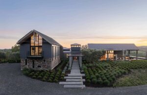 This wooded estate, set on a secluded woodland property on Chalk Hill in Sonoma County, was designed and built as a wine country retreat for a dynamic and creative couple from Southern California – a real estate agent who comes from a design and construction background and was intimately involved in the design and construction process, and his partner, a chiropractor with the green thumb who was responsible for the extensive landscape and vegetable garden.