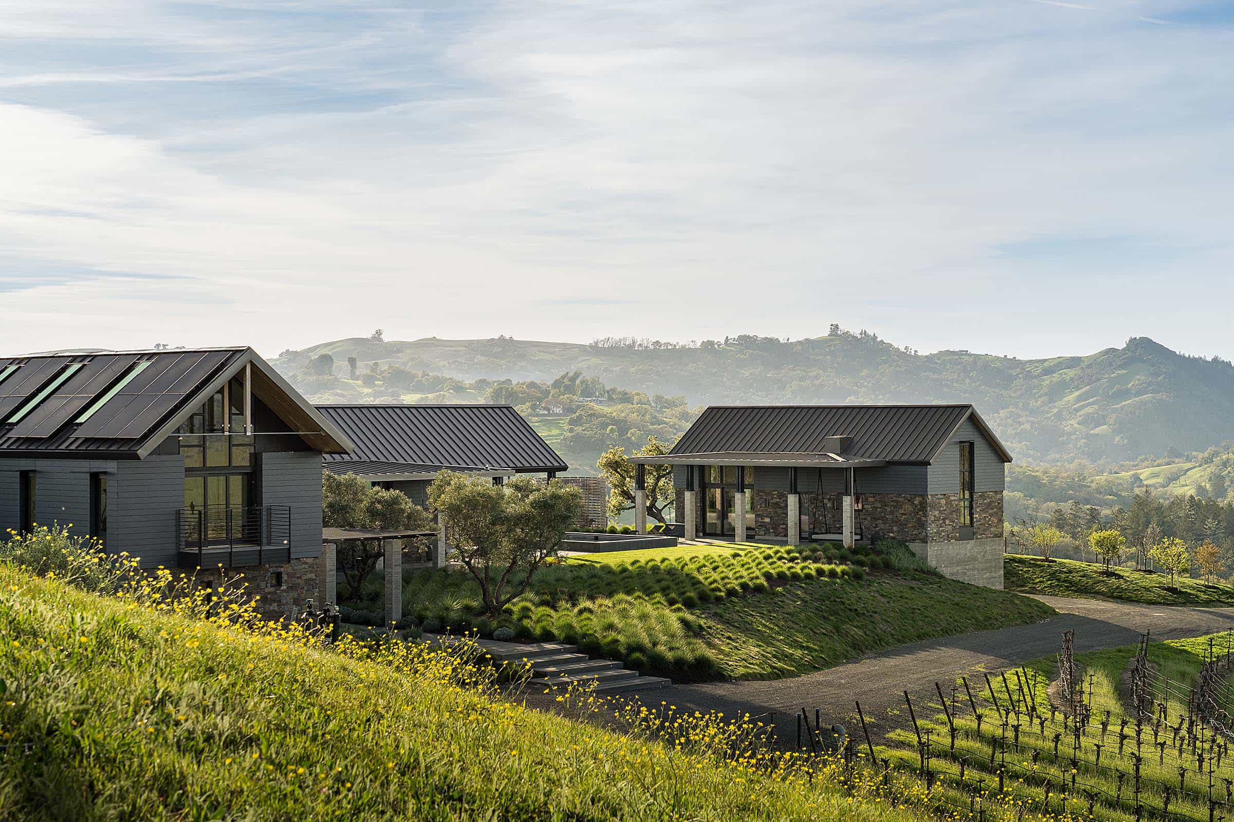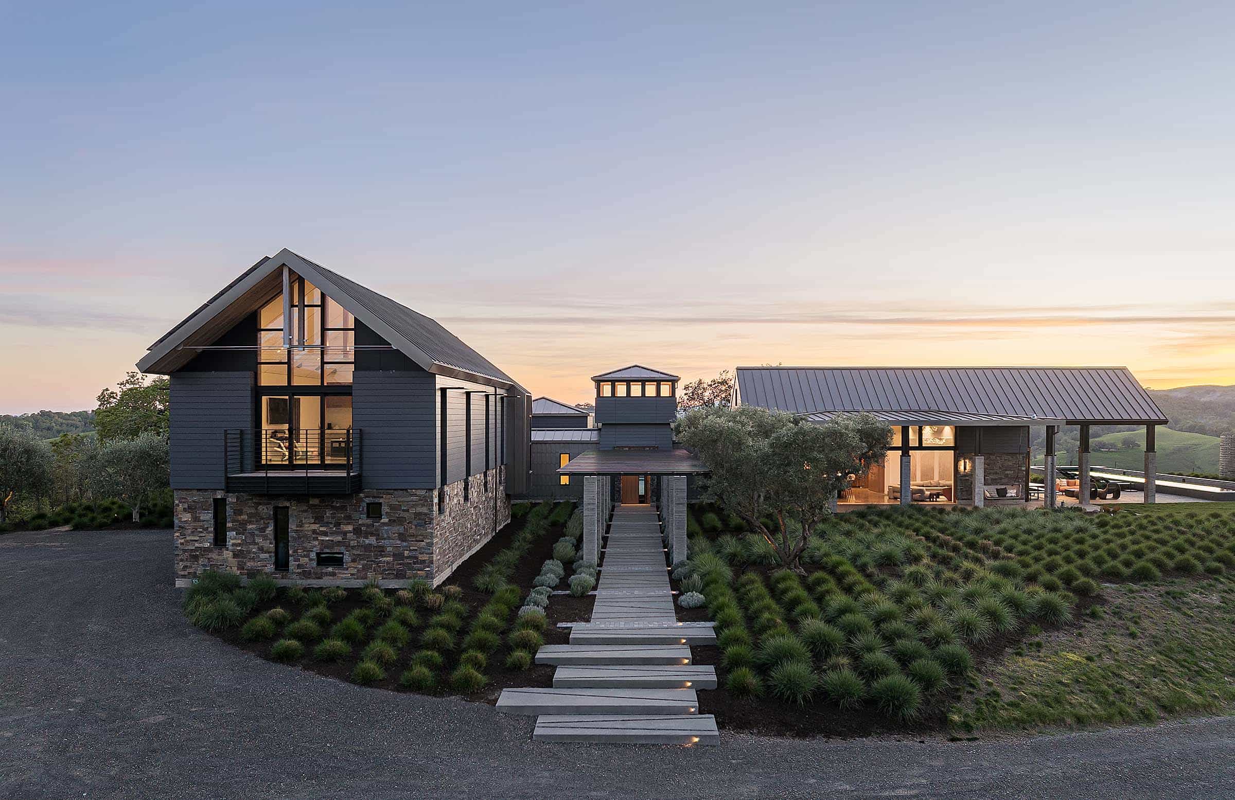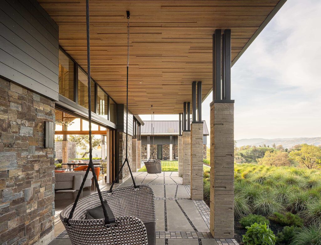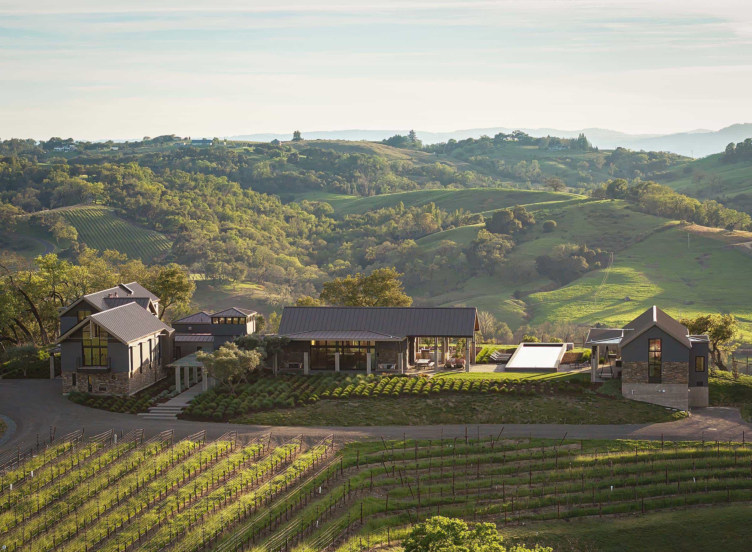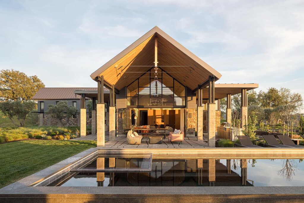 Working with Berkeley-based architect David Wilson, who had designed the previous guest wing, Nordby executed a vision that is as technically resilient as it is visually arresting. The new main house, pool house, and guest accommodations are oriented to fully embrace the panorama of surrounding hills and vineyards. The resulting footprint frames the landscape like a living canvas, with every room and space unfolding toward the horizon.