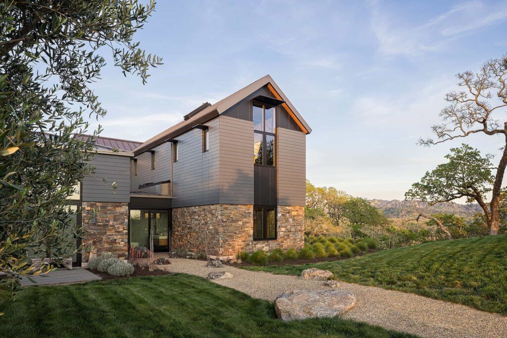 The Flora Ranch Estate is a graceful study in resilience and reinvention. From its hilltop position in Healdsburg, the legacy property commands uninterrupted 360-degree views of Alexander Valley, including Mount St. Helena and, on clear days, Mount Shasta. The grounds originally featured a spacious ranch-style residence, pool house, and barn built in 2008, with a guest wing added in 2016, all constructed by Nordby Signature Homes. After the devastating Kincade Fire of 2018 destroyed the living spaces, the owners returned to Nordby to create a reimagined, ground-up rebuild on the same site.